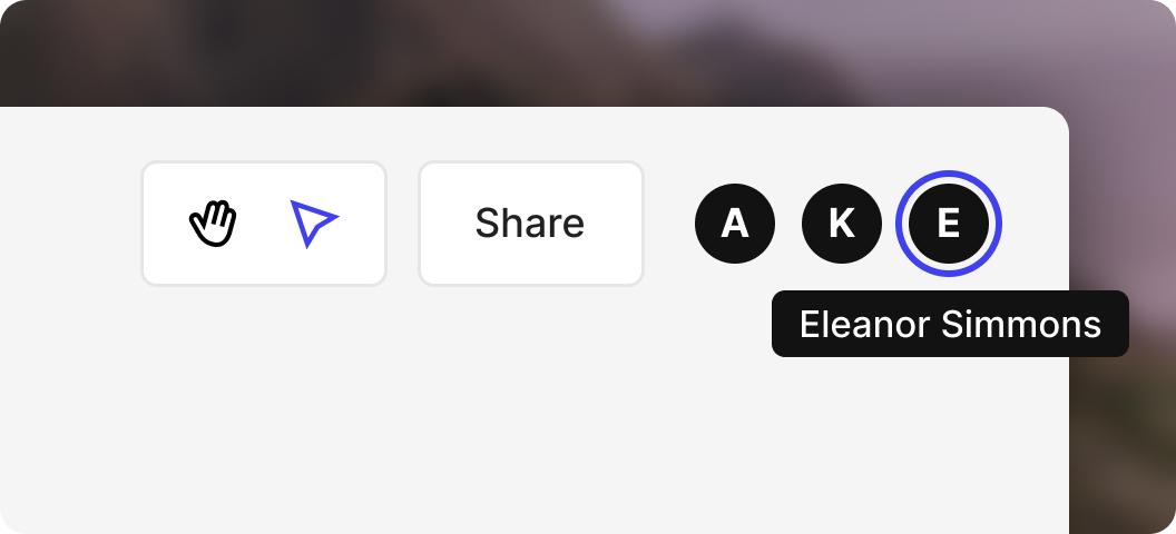 - See active users in your flow with icons representing each user in the top-right corner of your flow