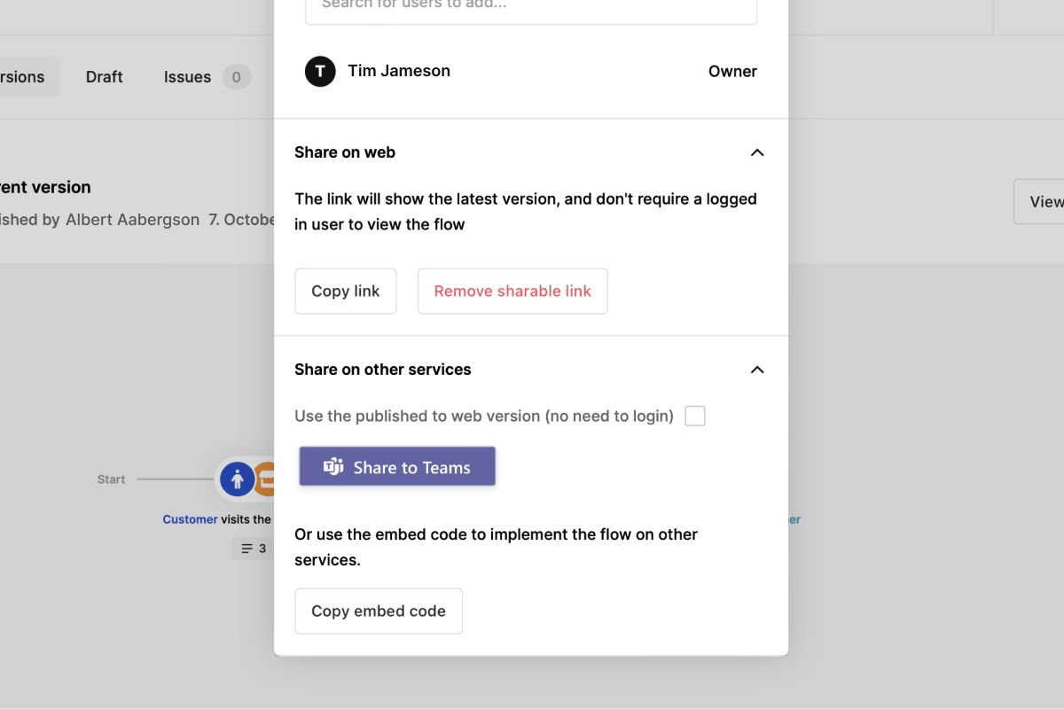 Integrate your flows into other tools and websites to share them with your colleagues or even with people outside your workspace.