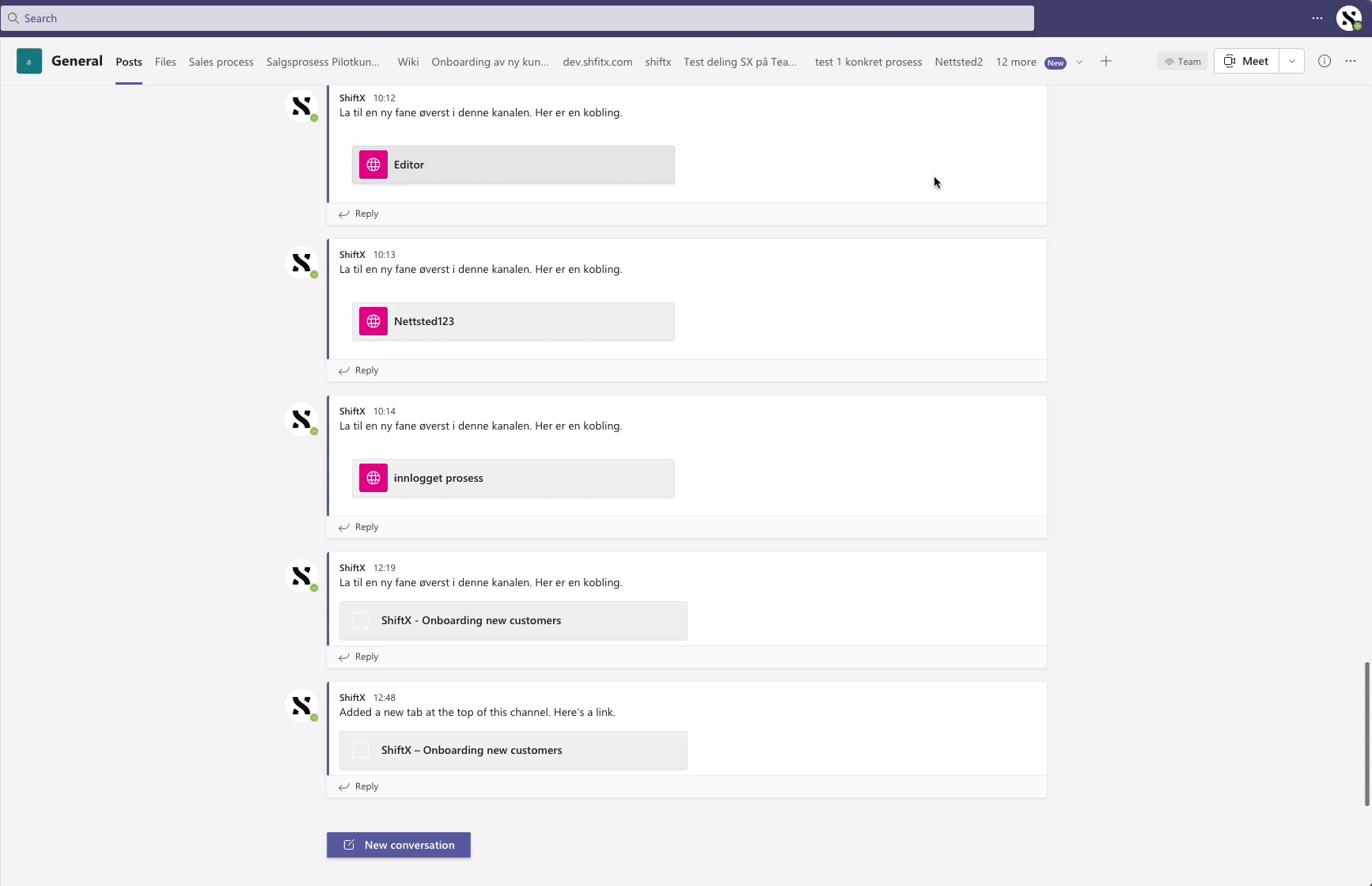 Click the "+" icon inside Teams channel to add a tab. When choosing between all the different integrations and apps, choose "Website", or the synonym in the language you have set as your preferred language in your Microsoft Teams (here is how you change language in your Microsoft Teams app). Once you have added the tab with a link to your ShiftX flow, you can navigate around in your flow, inside your team channel in Teams.