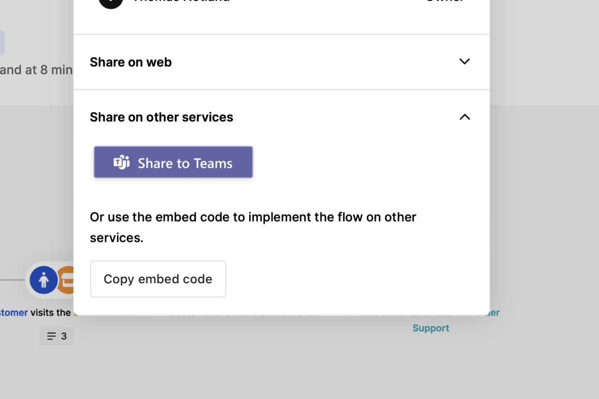 Copy and paste the embed-code to implement your flow on any website. If you need people outside your workspace to view it, you can even use the public linked version of your flow.